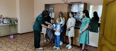 Директор МБОУ «Лицей №24» г. Волгодонска Нина Владимировна Белан приняла участие в торжественной передаче школьных рюкзаков и принадлежностей учащимся. Рюкзаки со школьными принадлежностями из рук директора лицея получили 8 учащихся 1-5-х классов. На встрече Нина Владимировна обратилась к детям и их родителям с добрыми пожеланиями здоровья и успехов в предстоящем учебном году.